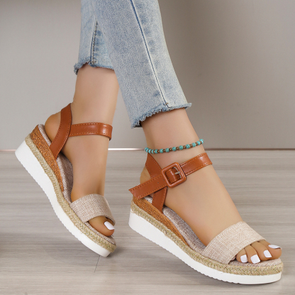 2025 Womens Vintage Buckle Ankle Strap Wedge Casual Sandals