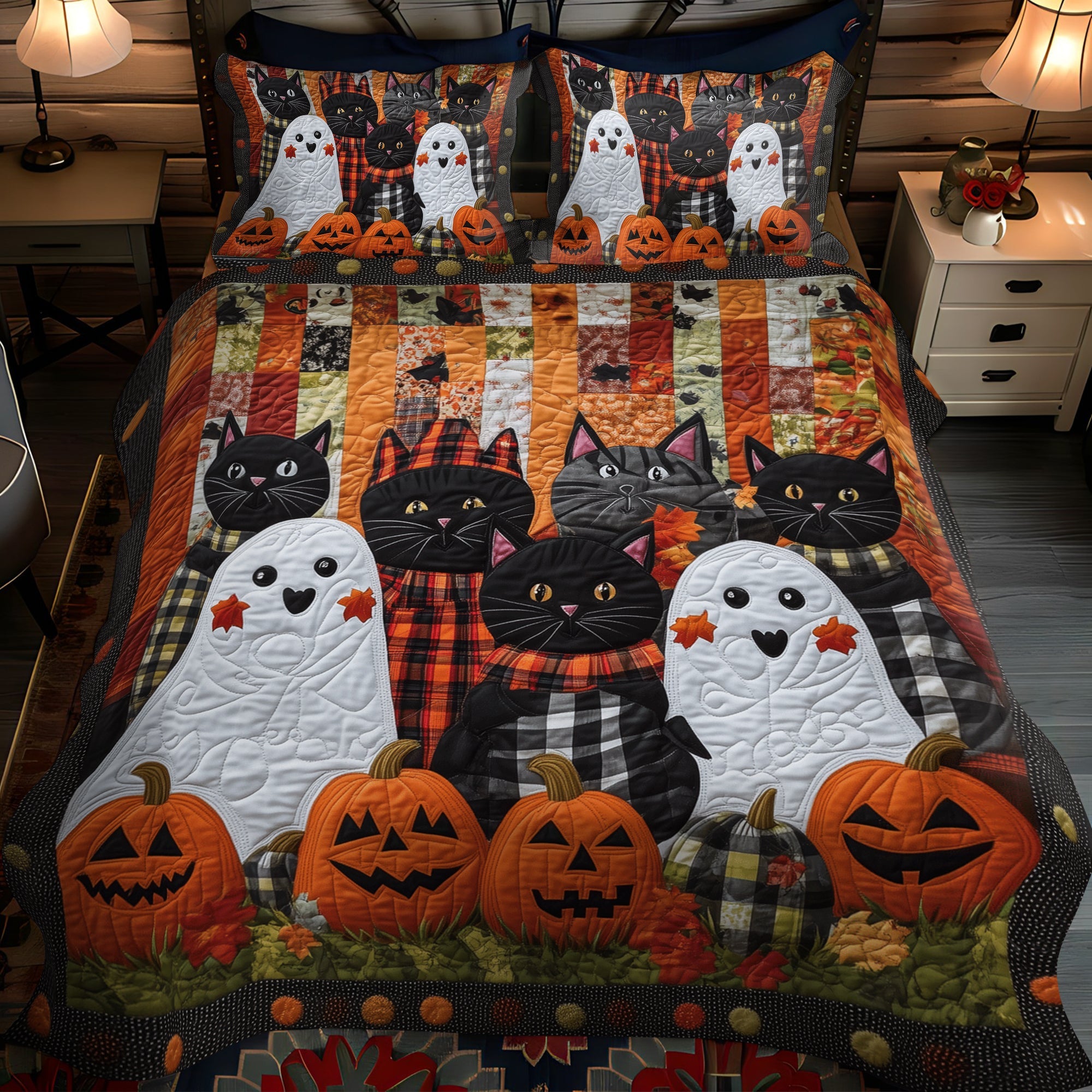 Spooky Feline 3-Piece Quilted Bedding Set NCU0TH1667