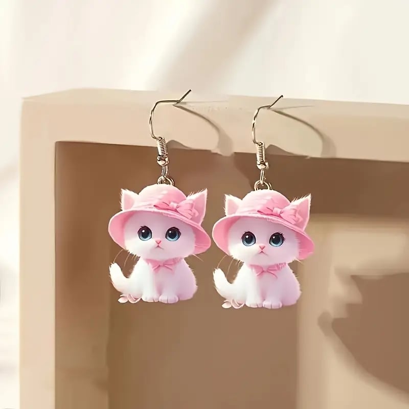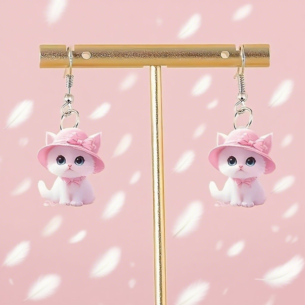 🎀Adorable Pink Hat Cat Earrings🩷