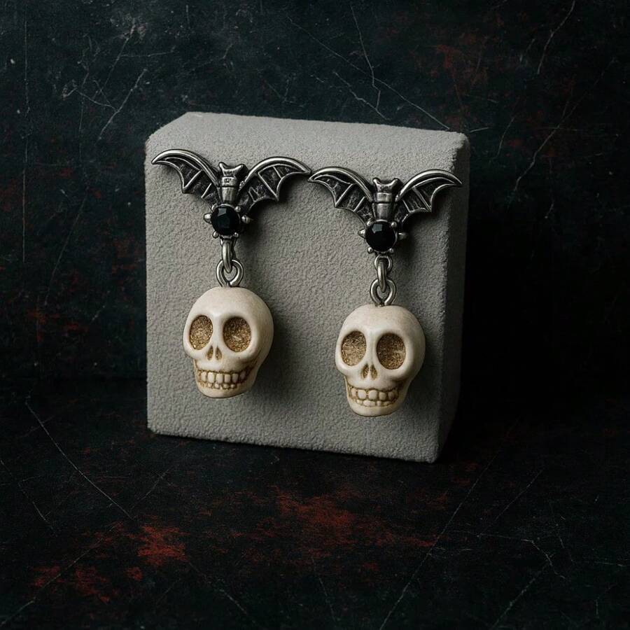 💀Gothic Skull & Bat Earrings🦇
