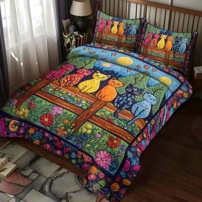 Artistic Night Cat-Themed 3-Piece Quilted Bedding Set NCU0PD431