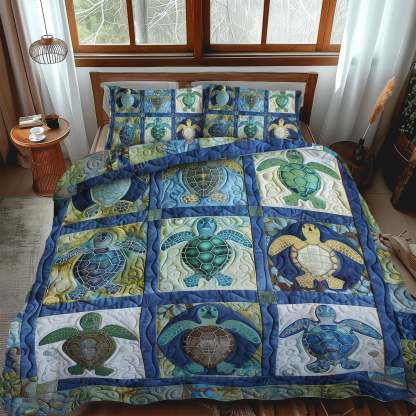 Blue Reef Turtle 3-Piece Quilted Bedding Set NCU0TL483