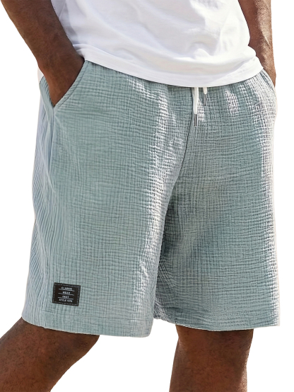 Men's Linen Wrinkle Texture Logo Shorts Are Taking Over American Summer Wardrobes