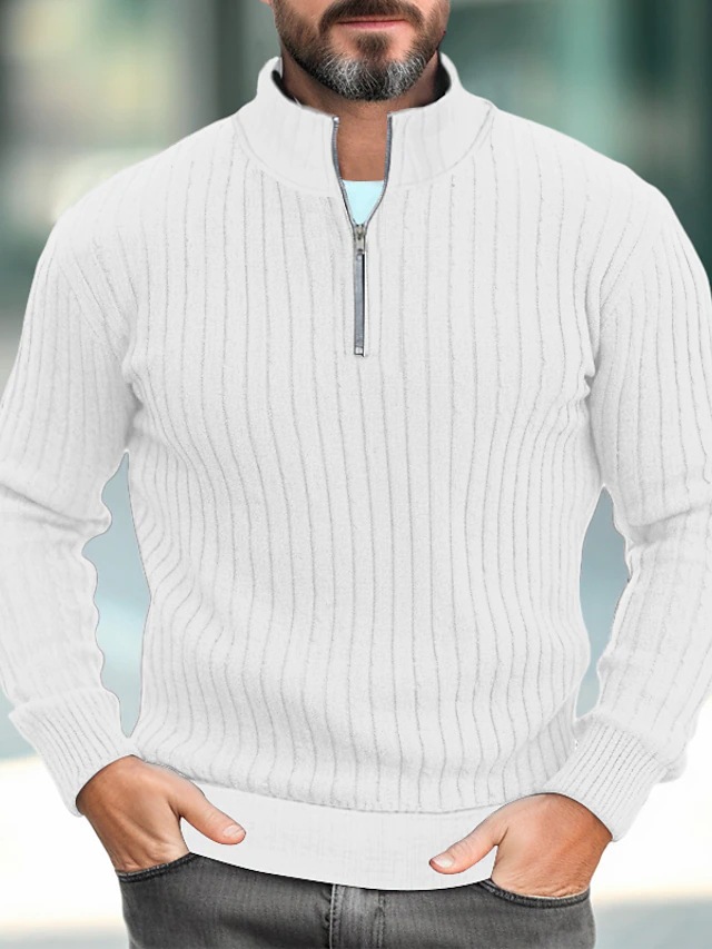 Men's Solid Color Stand Collar Knitted Pullover Sweater