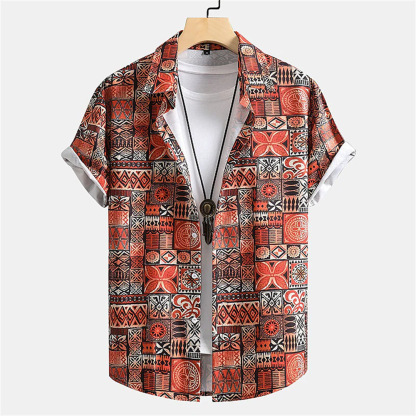 Men's Summer Patchwork Print Casual Vintage Short Sleeve Shirt