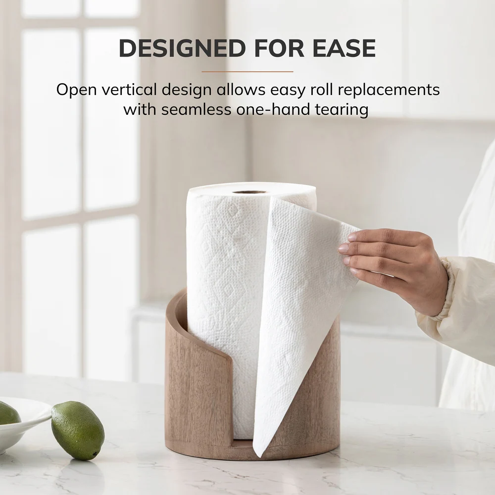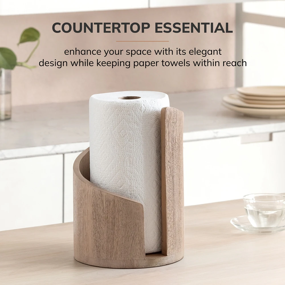 Mountain Paper Towel Holder Countertop with Mango Wood Round Base and Iron Holder