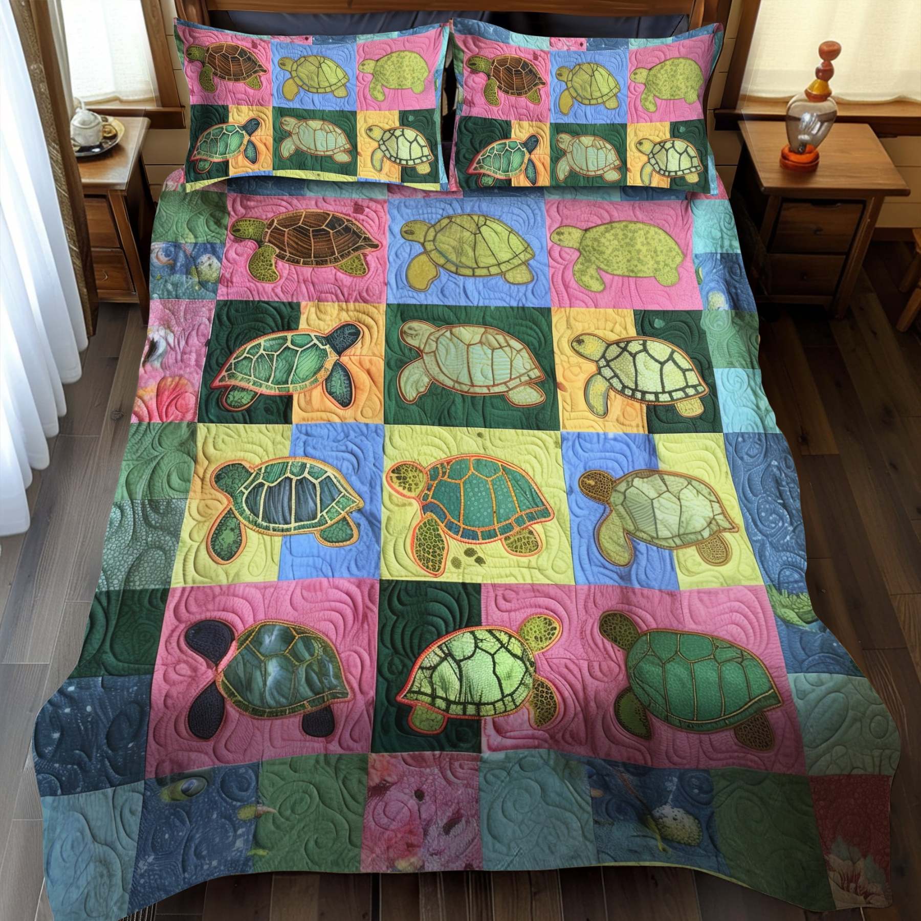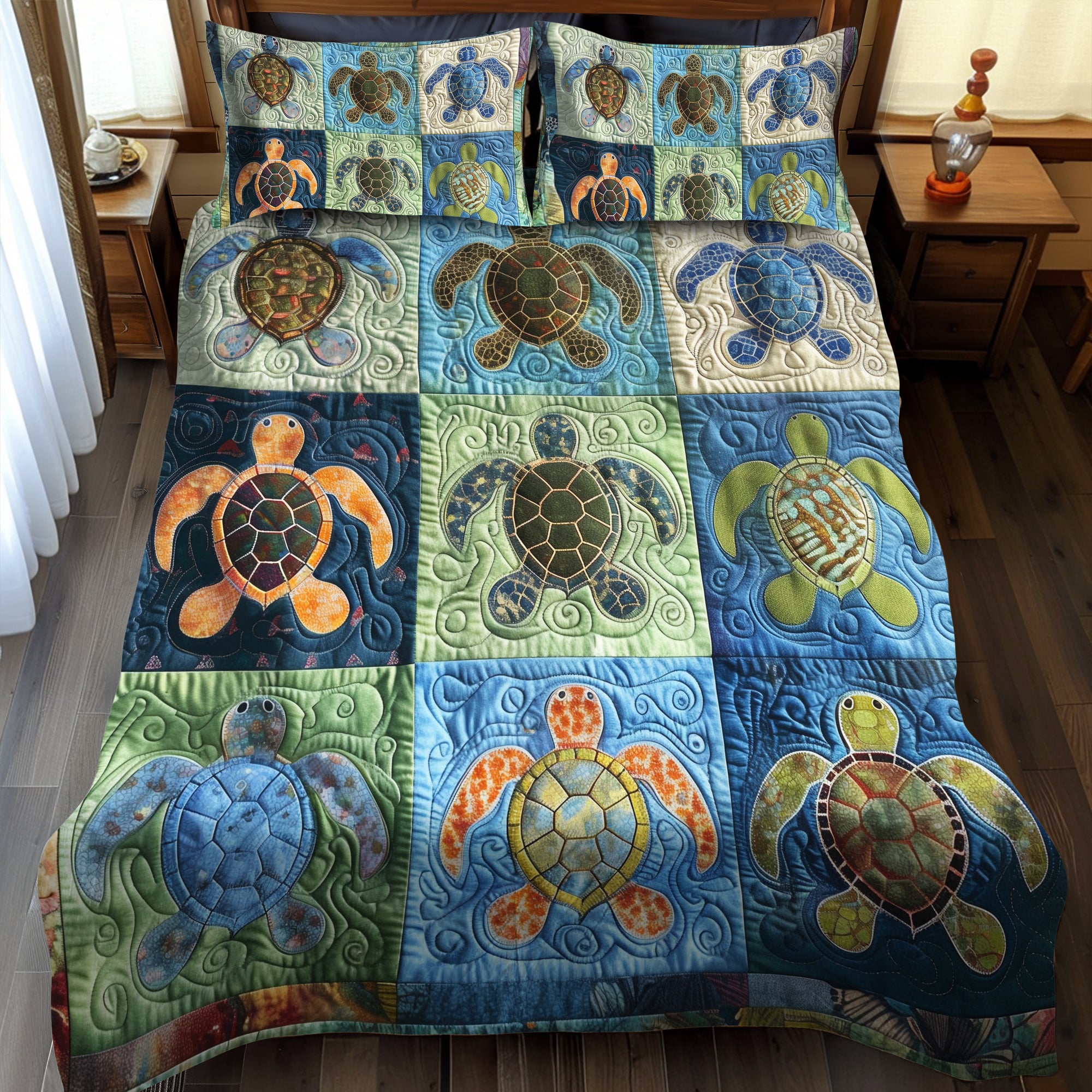 Sea Turtle Quilted Bedding Set NCU0VT05