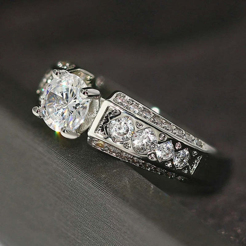 Vintage Silver & Crystal Round Gem Ring