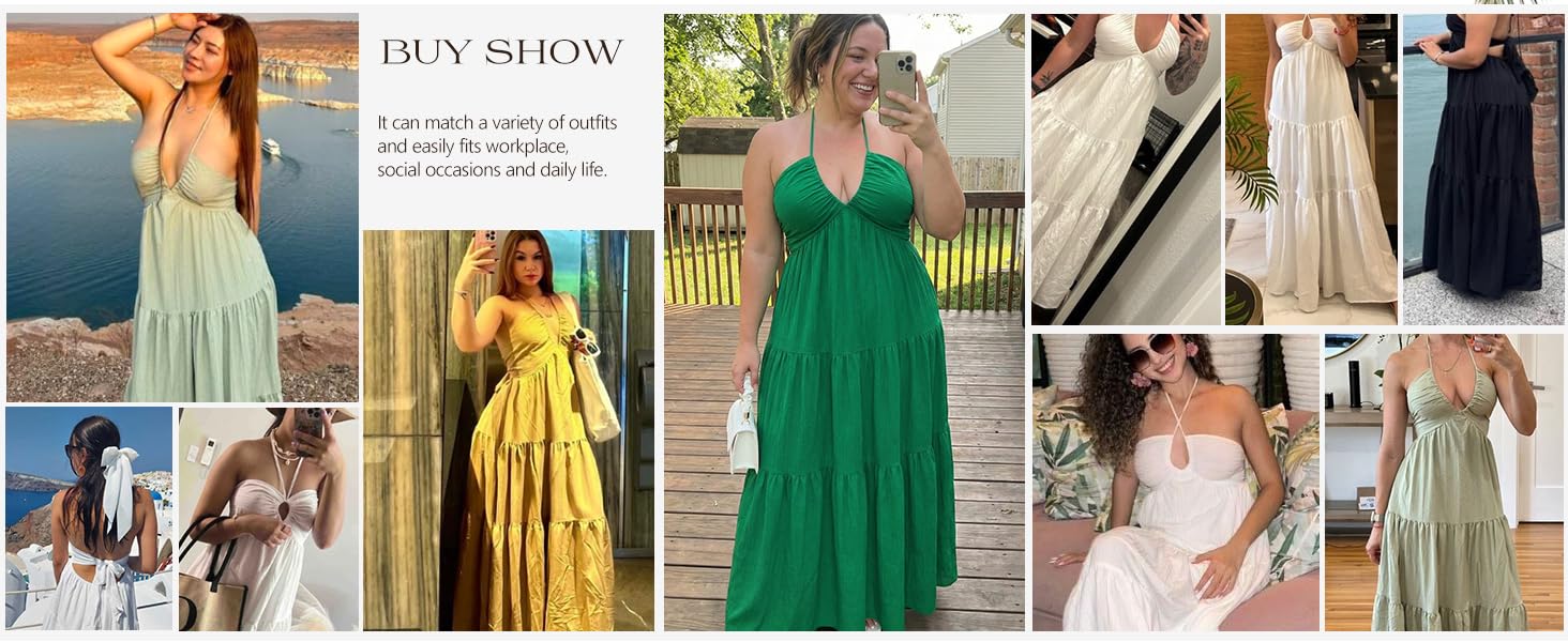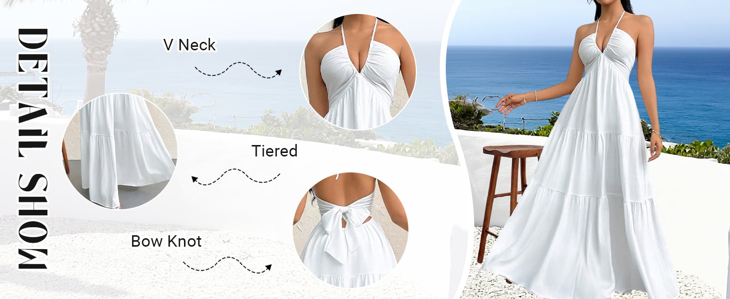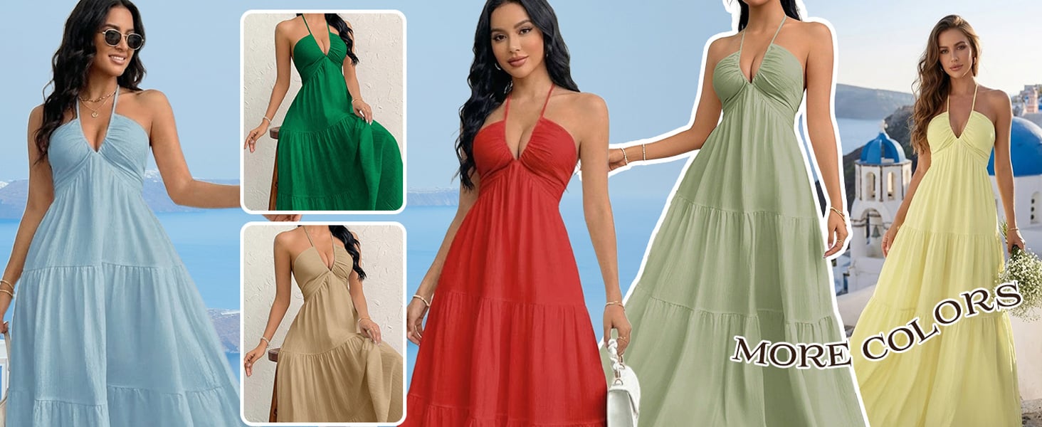 👗Women's Maxi Summer Dresses Halter V Neck Beach Dresses💖